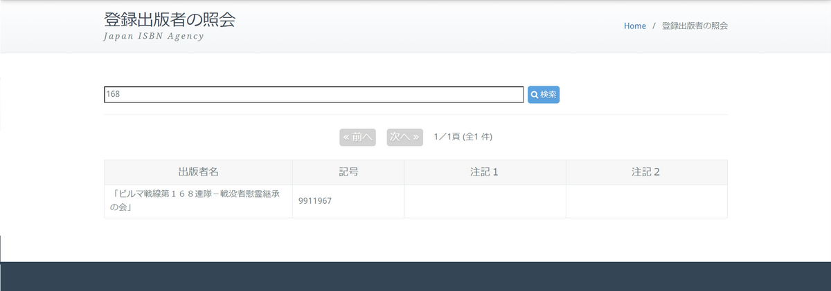 ところで、出版社はそれぞれ固有の番号を持っています。検索もできます。
